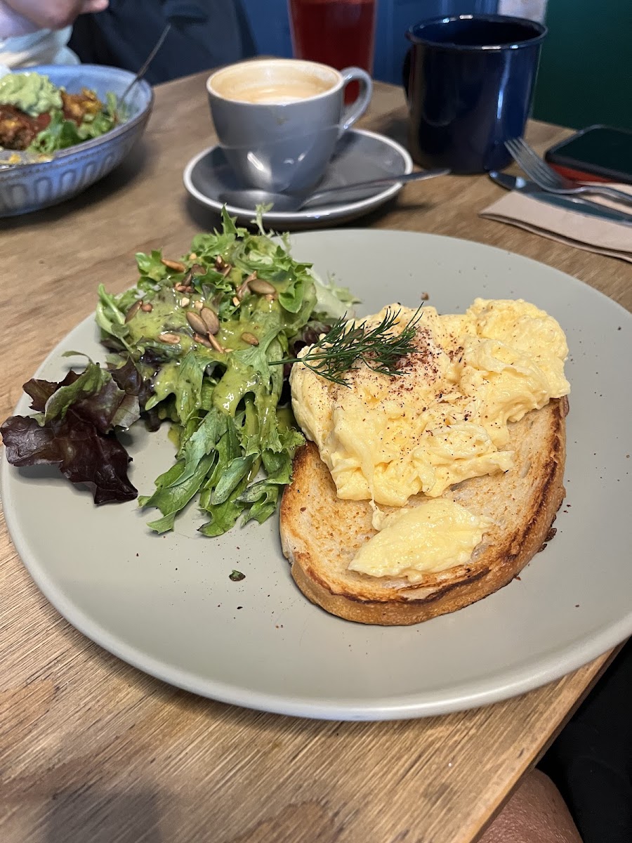 Breakfast and brunch visitors often linger over house-made breads, especially the sourdough crumpets paired with homemade jams and fruit compotes, which receive consistent praise. The atmosphere tends to be laid-back, with friendly staff who know their regulars and a menu that encourages leisurely, unhurried breakfasts or light lunches. Corn fritters and sides like wilted spinach or smoked salmon round out meals, making it easy to customize for different appetites.